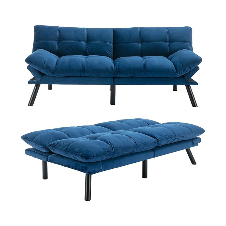 - Lustrous Velvet Futon : Our small futon is covered in soft, plush velvet instead of commen rough linen, offering exceptional comfort and a touch of luxury. It’s durable, resistant to wear, and easy to clean, making it both stylish and practical for long-lasting appeal.