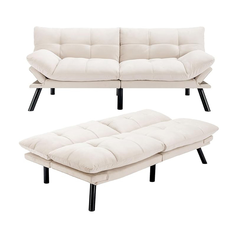 - Convertible Futon Sofa Bed: The push and pull desgined backrest of futon couch bed has three position 110° ,150° or 180° for sitting, lounging and sleeping plus 4 armrest tilt positions (0°, 15°, 30°, 45°) for your cozy sitting,or doubling as a pillow for sleeping.
