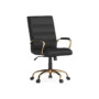 Flash Furniture Whitney Mid-Back Swivel LeatherSoft Desk Chair with Padded Seat and Armrests, Adjustable Height Padded Office Chair, Black/Gold