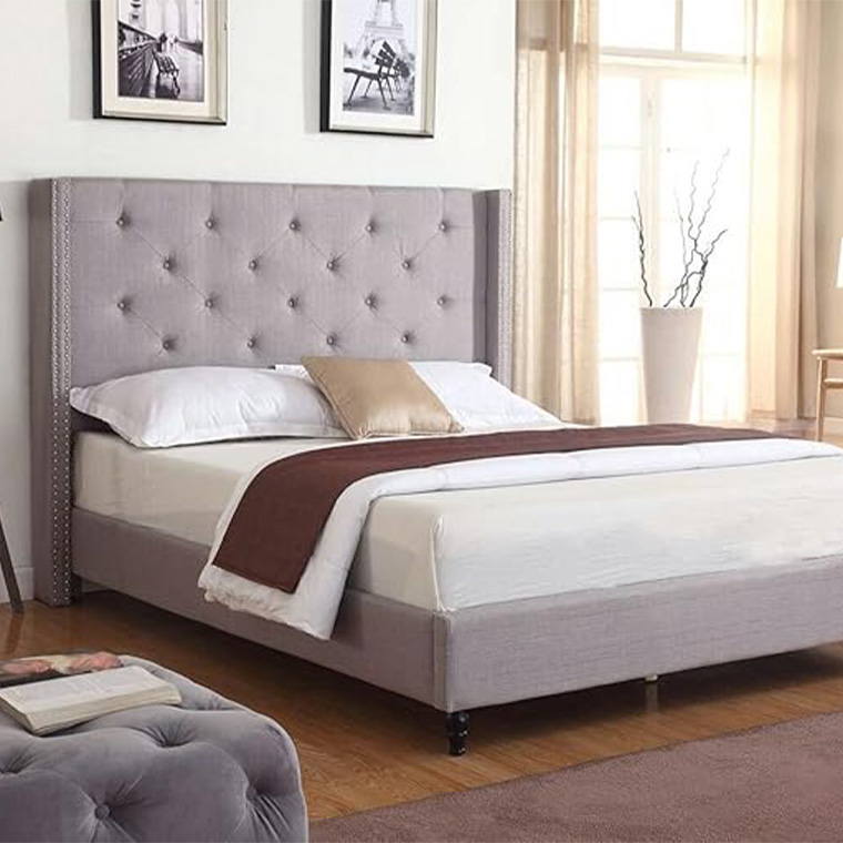 • Linen PLATFORM BED WITH SLATS.EASY TO ASSEMBLE PLUS NO BOX SPRING REQUIRED!