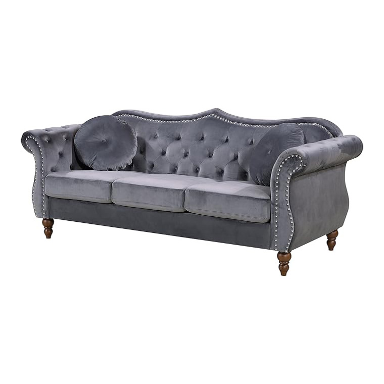 • DECADENT VELVET UPHOLSTERY: Indulge in the plush comfort of this living room couch, wrapped in soft, inviting velvet; Its rich sheen & elegant button tufting add an air of sophistication to your space