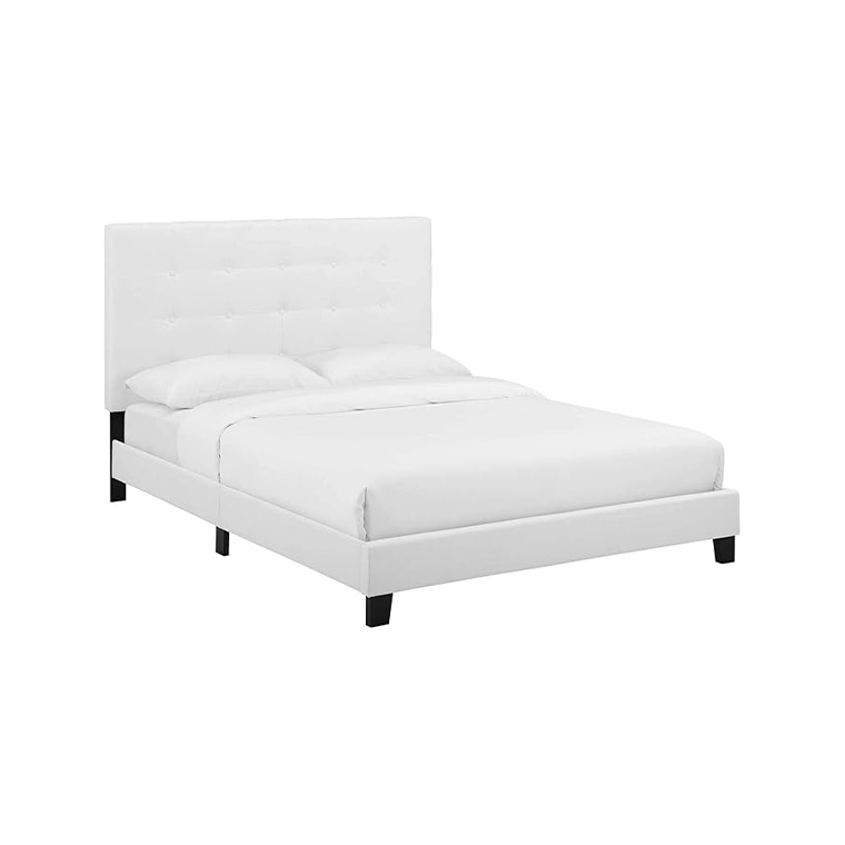 Modway Melanie Tufted Fabric Upholstered Queen Platform Bed in White